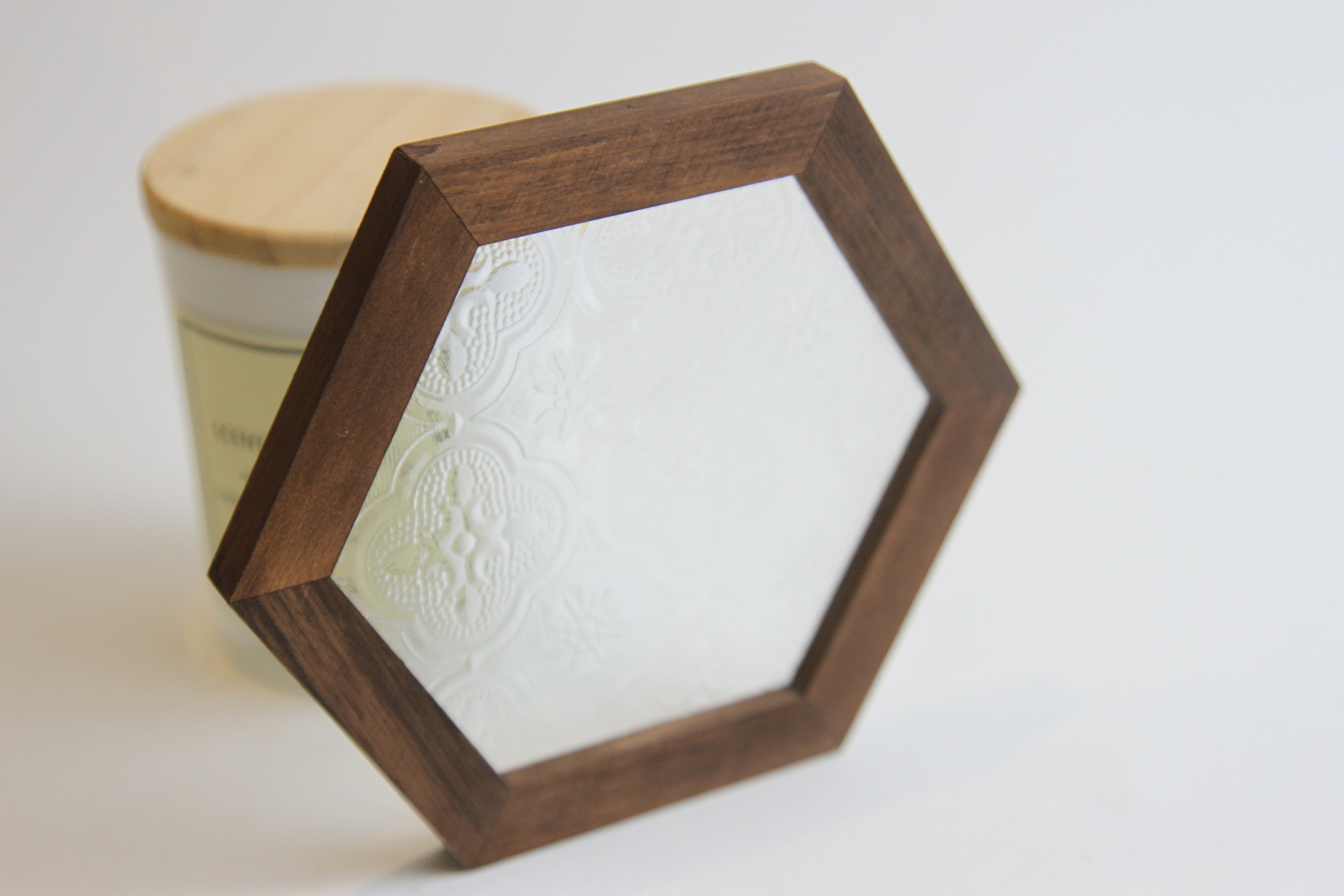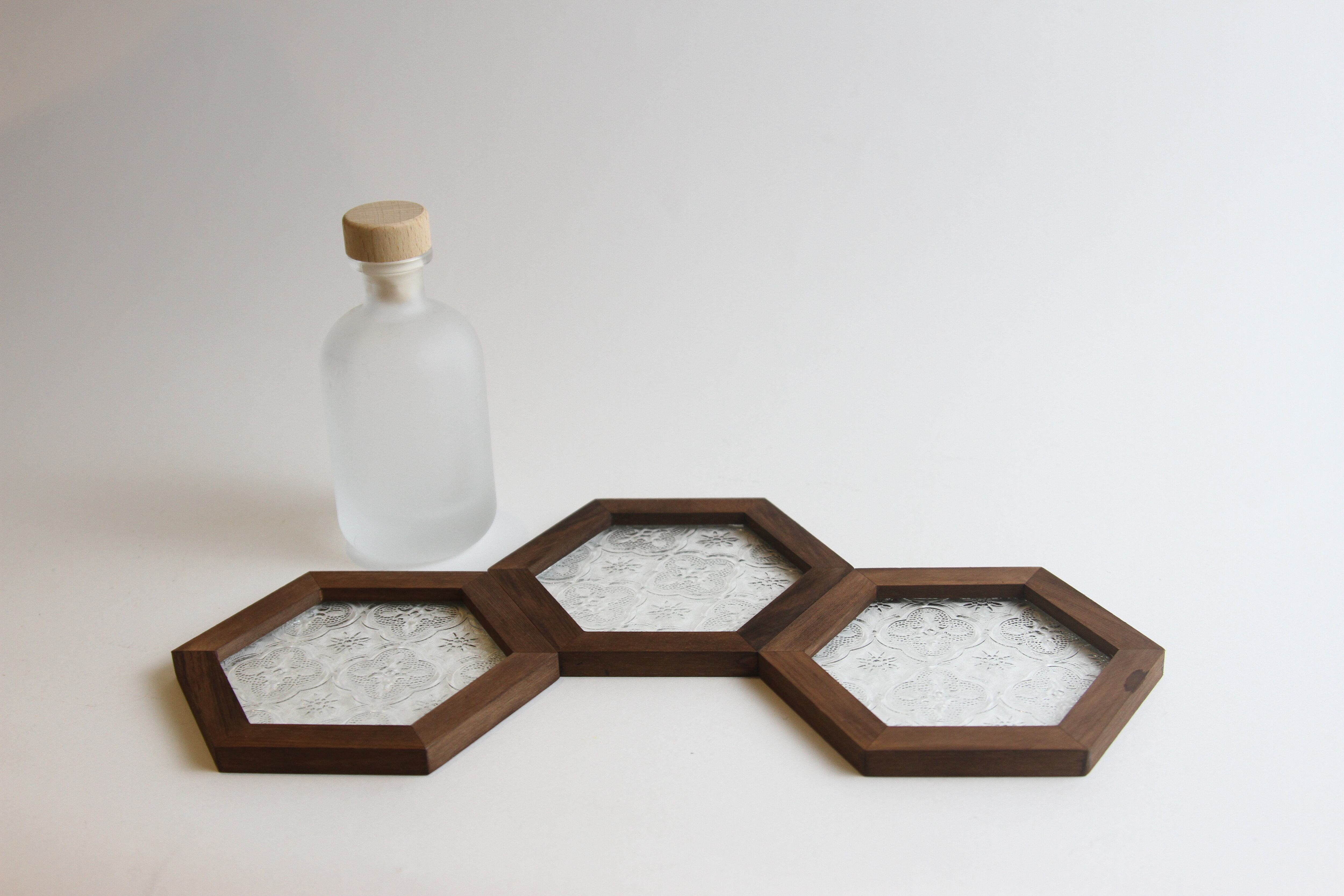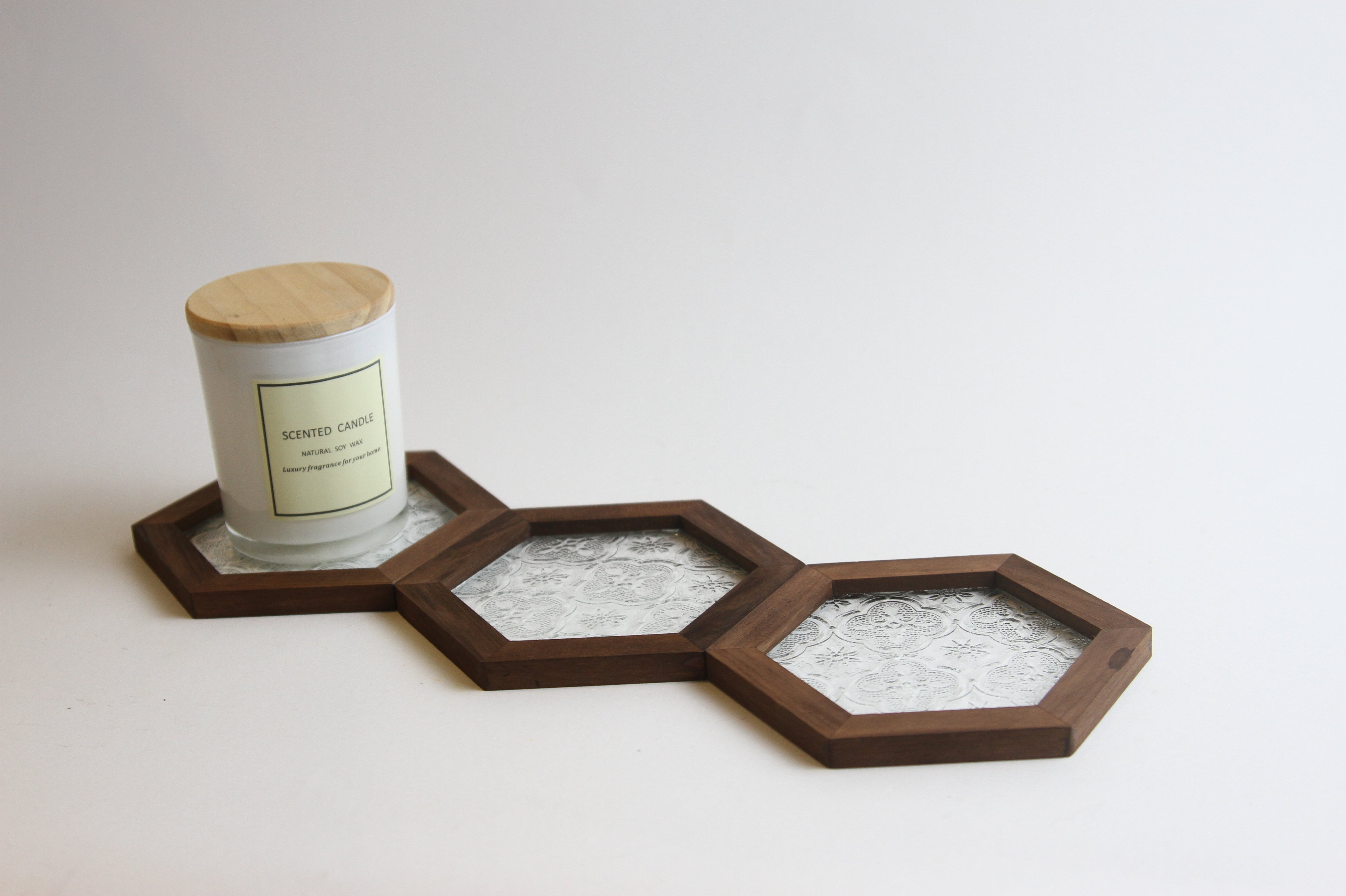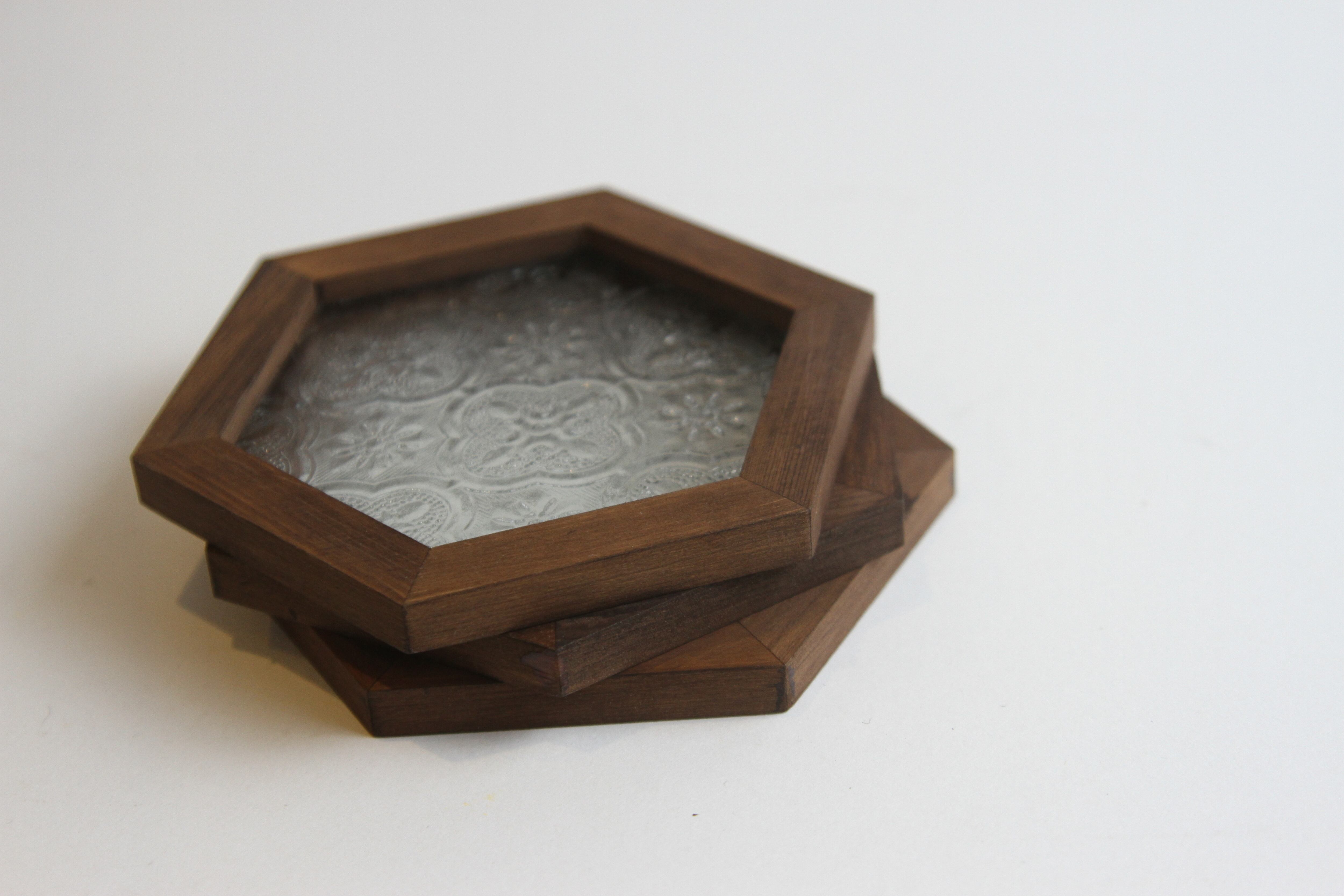 台湾職人手作り・ロッカクガタカイドウ(六角型海棠)木枠ガラスコースター