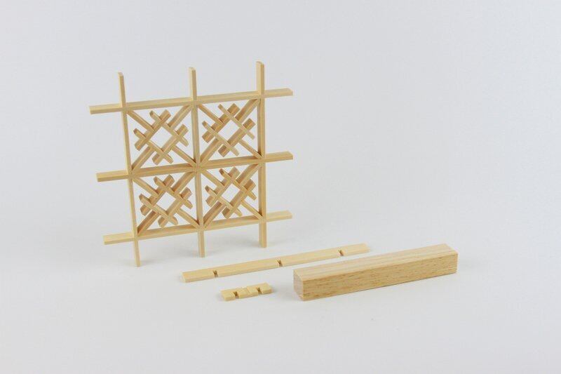 溝や穴を利用して一つ一つのパーツを精巧に組み合わせ、接着剤も使用せずに仕上げます。