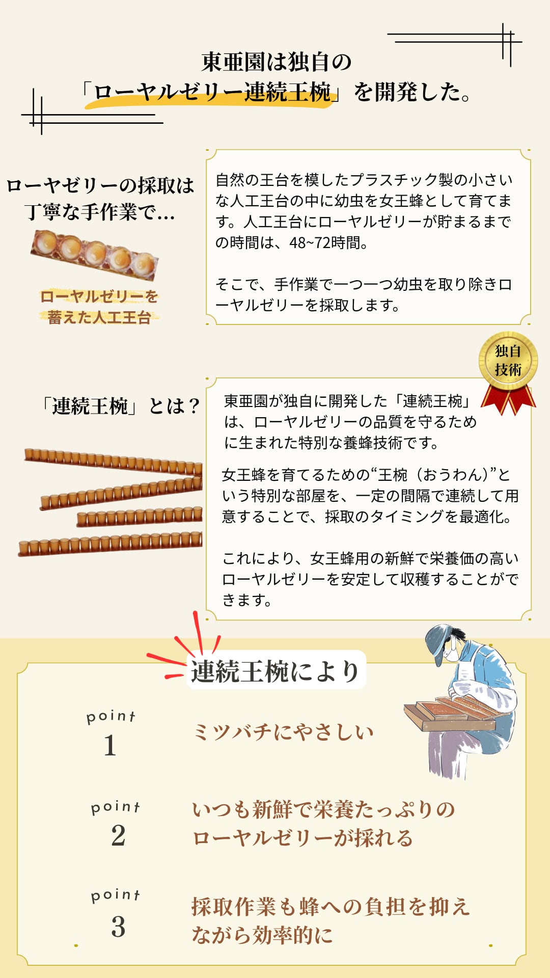約40年前、東亜園は日本で初めて「台湾産生ローヤルゼリー」を輸入し、その元祖として多くのお客様に愛されています。