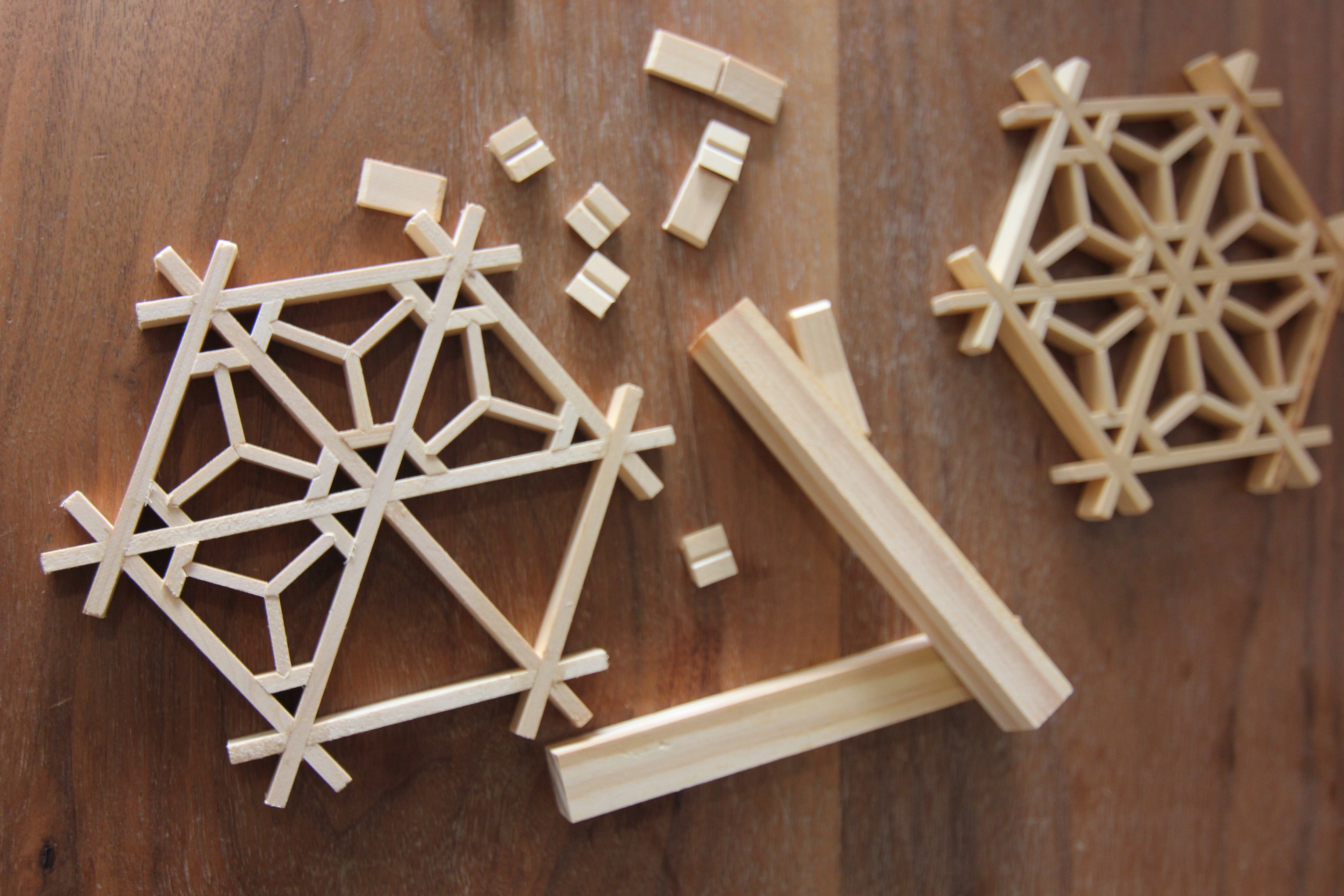 木片を手作業で組み合わせながら、花窓工芸の技術を学べる体験型キットです。