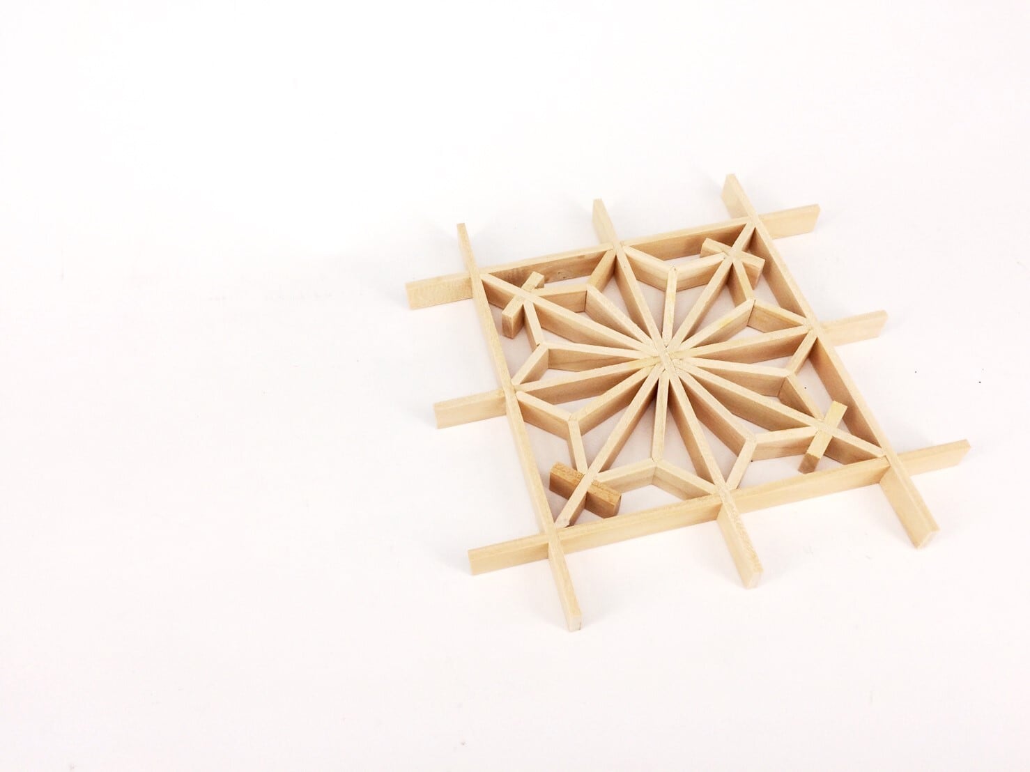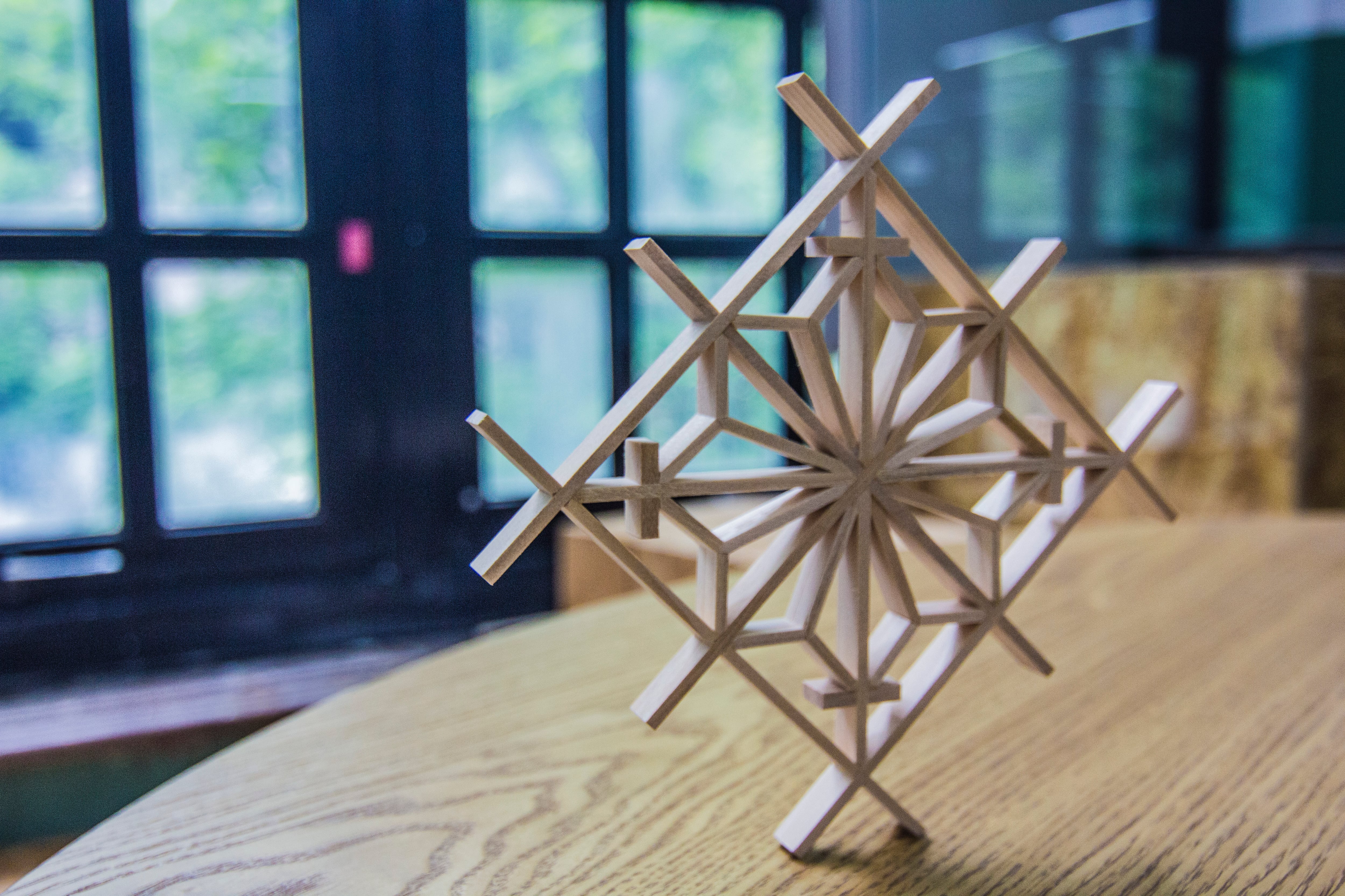木片を手作業で組み合わせながら、花窓工芸の技術を学べる体験型キットです。
