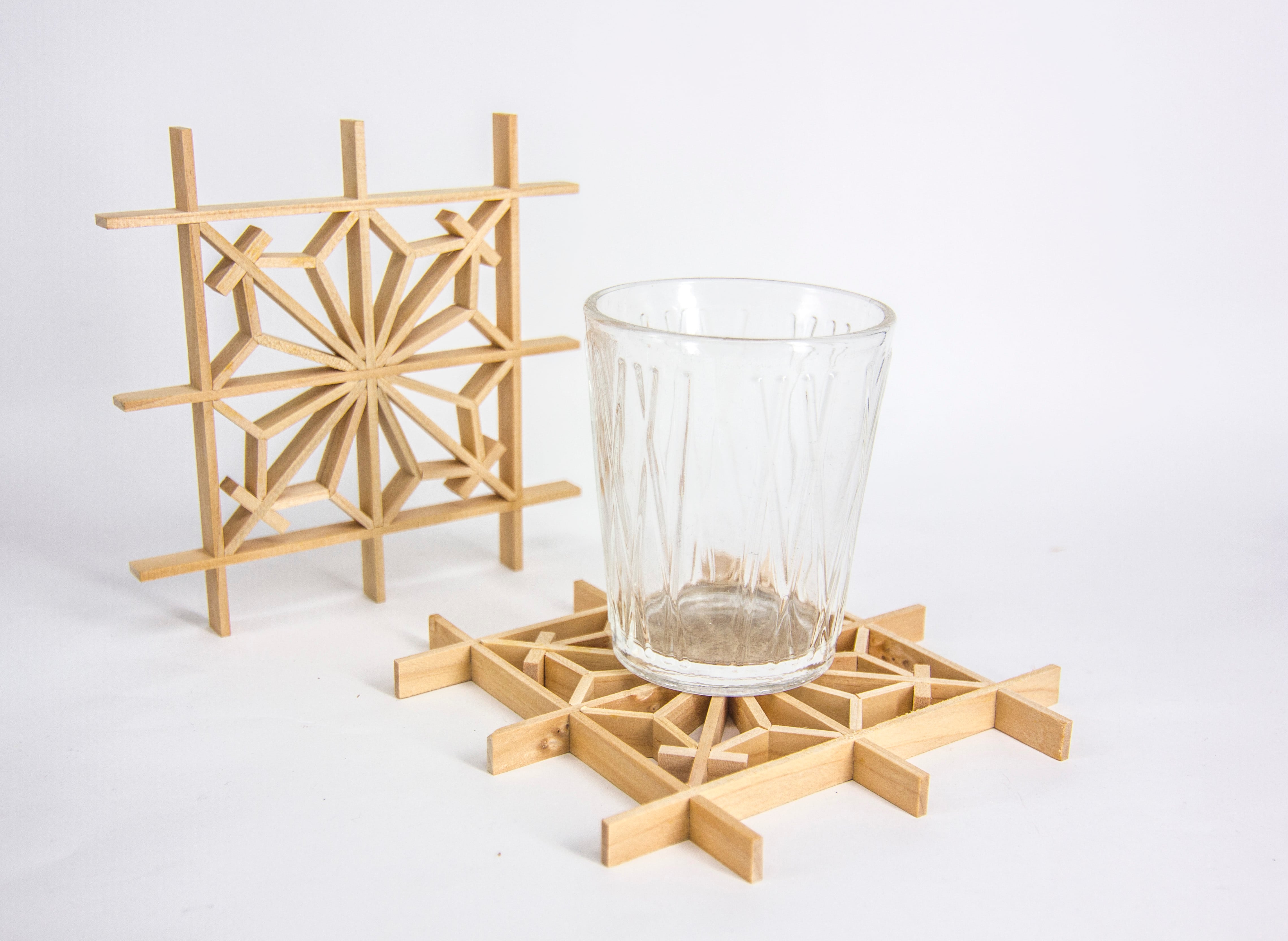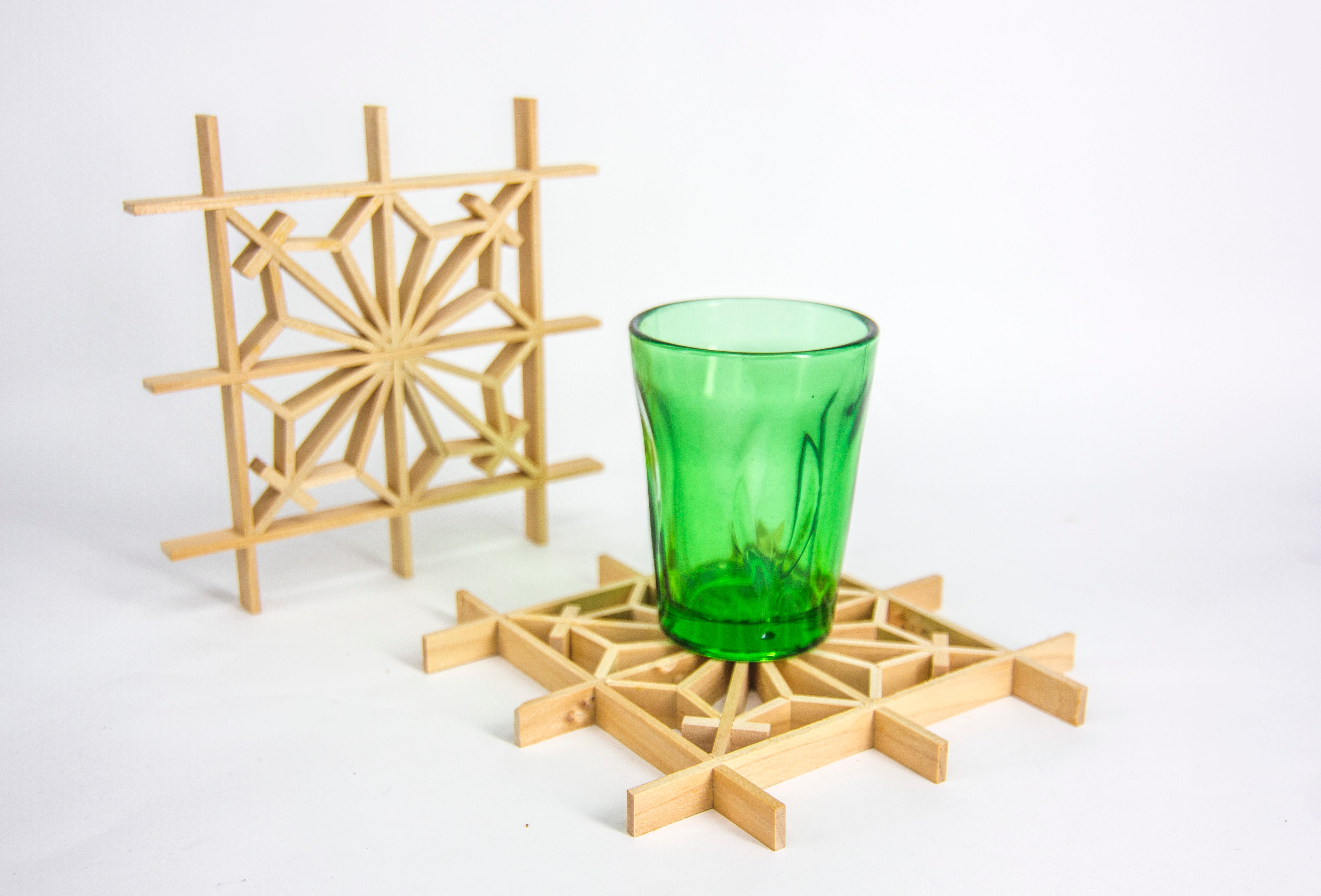 台湾職人手作り・花窗DIY体験キット|木製窓花コースター - 麻花紋(麻花紋体験包)