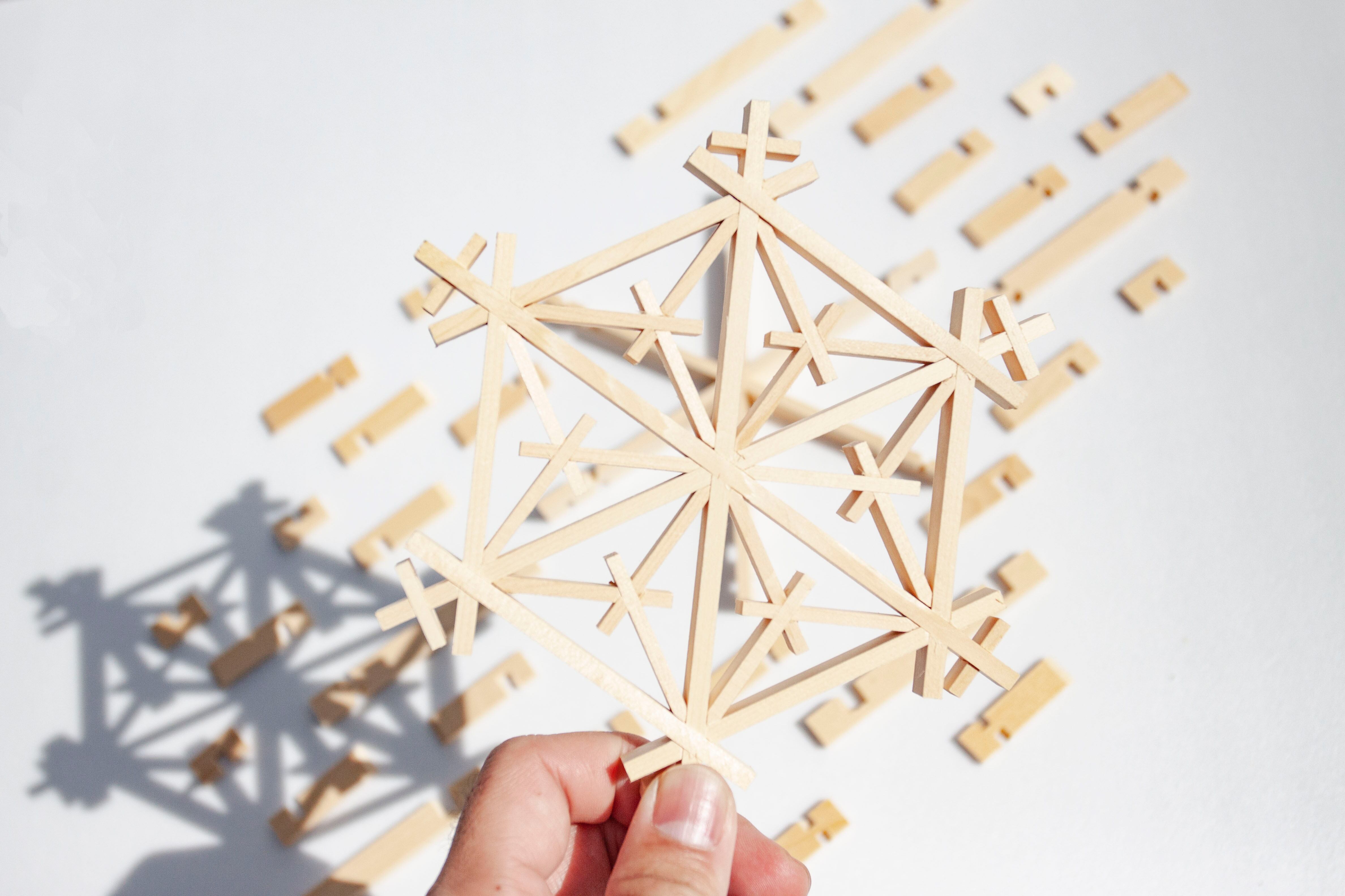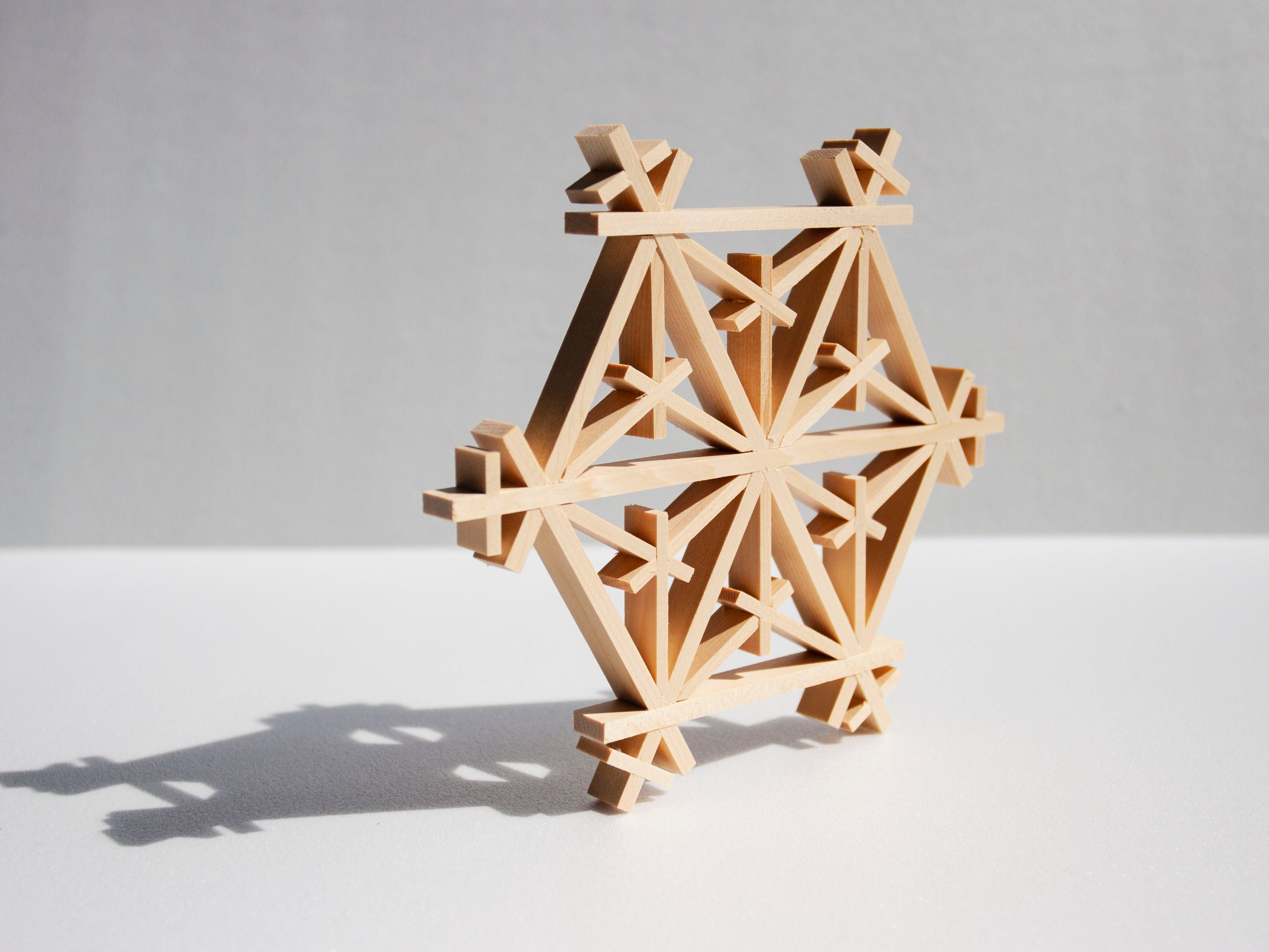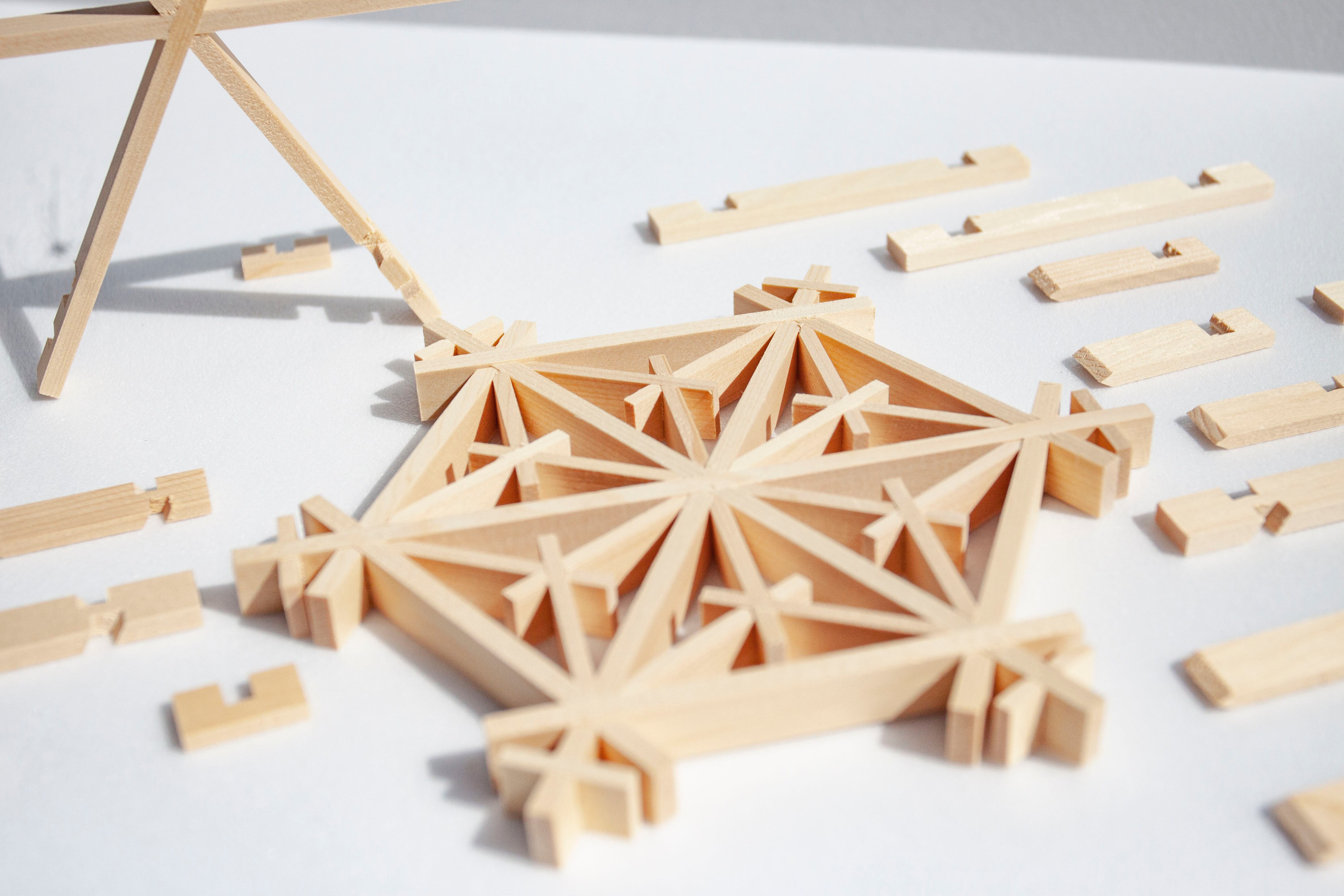 溝や穴を利用して一つ一つのパーツを精巧に組み合わせ、接着剤も使用せずに仕上げます。