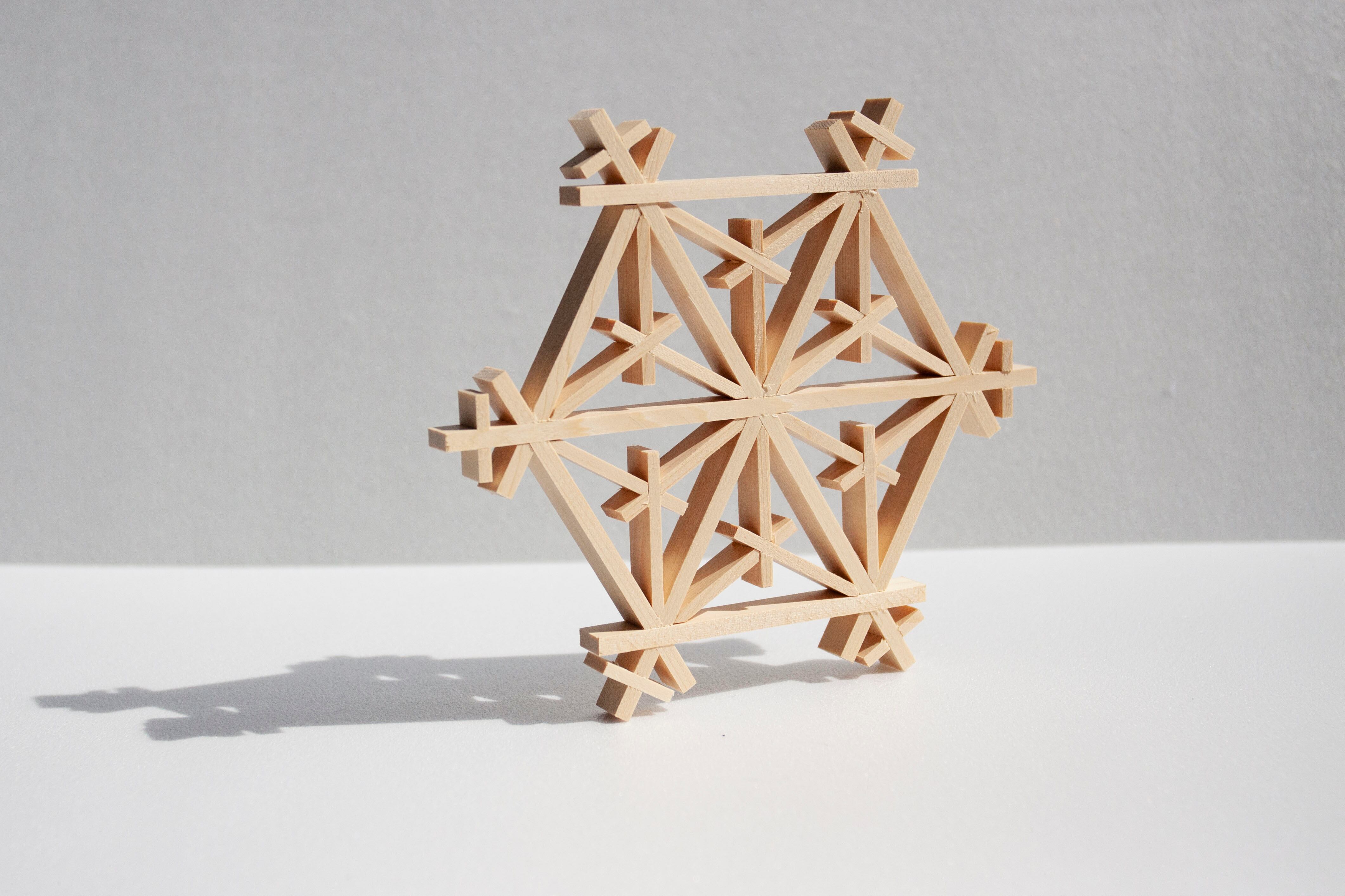 木片を手作業で組み合わせながら、花窓工芸の技術を学べる体験型キットです。